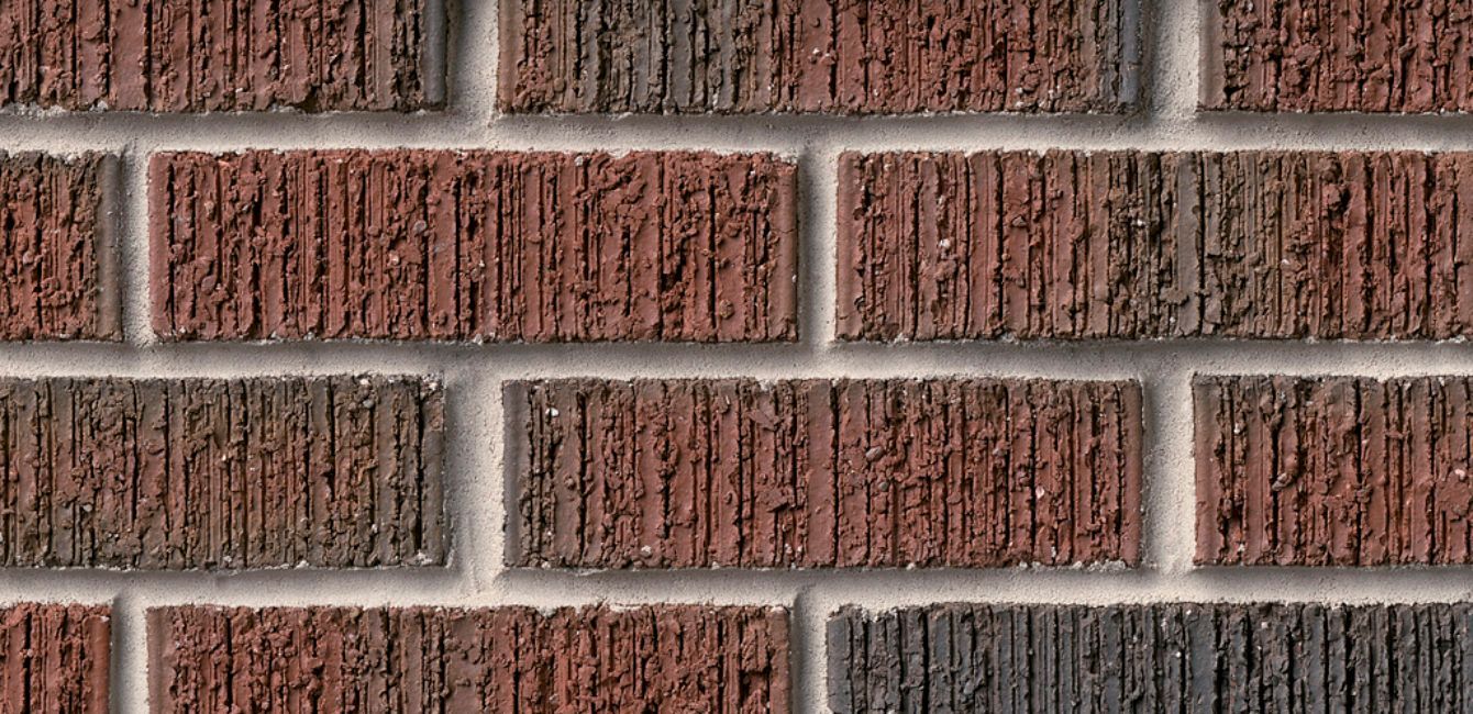 Red Rug Flashed builds on the bold, linear texture of the Red Rug style, adding kiln-fired “flashed” accents that introduce darker browns and charcoals throughout the blend. The deep vertical striations create strong shadow lines and movement, while the color variation adds depth and a more dynamic, lived-in appearance. With light mortar, the pattern remains crisp, allowing both the texture and flashing to stand out. This brick is a great fit for designs seeking a more dramatic, textural red with added contrast—working well in both traditional and contemporary applications.