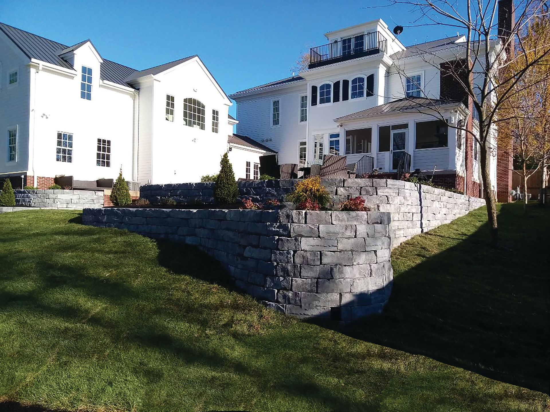 - Retaining walls and double-sided freestanding walls possible with the wall block. Blocks are finished on both the front and back faces and are tapered on each side approximately 1.5 in (38 mm) from the front to the back of the block.